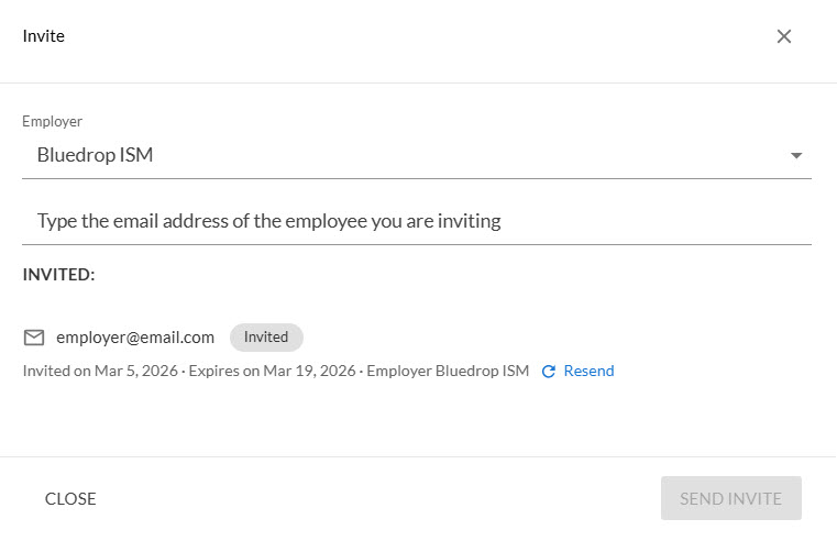 To review the Employees that have been invited, but have not yet accepted their invitations into your Employer Network, navigate to the My Team and select the Invite button.